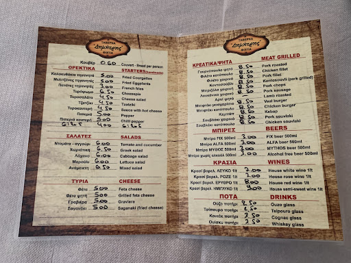 We ate tsatziki, marinated eggplant and stuffed vine leaves as starter, meat (pork and beef) as main dish. Everything was well cooked, tasty and served quickly. We didn't order any desert as we were full, they did not serve coffee.