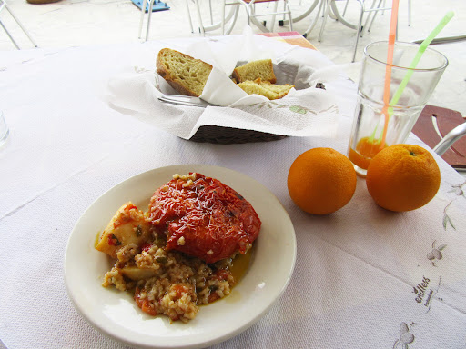 We bestelden 2 pizza’s, kip souflaki en een bord spaghetti speciaal. Dit was helaas de slechtste souflaki die ik in Griekenland gegeten heb. Droog, geen smaak en te lang gebakken. De pizza’s waren extreem simpel, tomatensaus, ham en een enorme hoeveelheid kauwgom-achtige kaas erop. De spaghetti was helemaal geen spaghetti maar penne, dat is helemaal iets anders dan op het menu stond. Ook die was erg simpel met tomatensaus, paprika ham en een enorme kwak kaas erop. Ik had het thuis beter kunnen maken helaas.