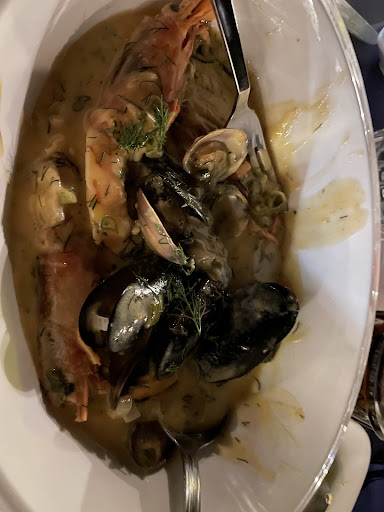 My ultimate favourite is her dólmades as they were so fresh and so amazing in quality (served warm), that I could not stop eating them (they serve some 25 small ones in a plate!) Great variety of wine. Good quality! Fish well prepared!