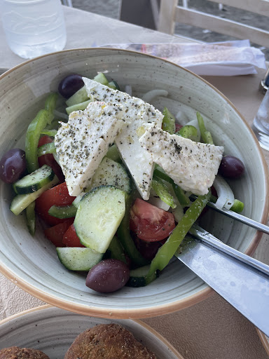 Read moreLovely menu with plenty of choice. Greek salad was disappointing, served very cold rather than room temperature and the tomatoes weren’t particularly good. The small fried shrimps however were rich, tasty and a generous portion. Very helpful staff assisted me up and down the 3 steps. Good service and lovely view. Try it for yourself, I’ll be back next year to sample more from their...