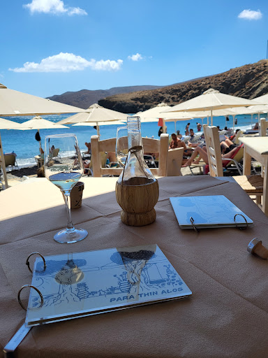 We had lunch 2 times in Para thin alos and we loved it. The armosphere of the restaurant is very relaxed, by the beach with a view of Chora to the left and the southern part of the island to the right.