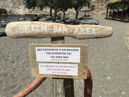 Unfortunately, all the negative comments you read below are true. I recommend visiting this beach but bringing your own drinks and food. I am deeply disappointed that he considers himself a businessman and a representative of Greek hospitality because he is not. His bad personality and narrow mind have created very bad memories for many people. If I hadn't experienced this bad behavior myself, I wouldn't believe that someone could be so rude and inhumane. It's a pity that he doesn’t have a business mind and he discredits an extremely...