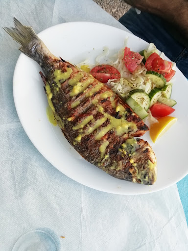 Ci sediamo per mangiare qualcosa al volo... Posto non curato, ma in una buona posizione vicino al mare... pensando di mangiare veloce e non spendere molto. Non abbiamo mangiato molto, ma abbiamo speso un bel po', soprattutto per quelli che sono gli standard di prezzo della zona. Un polpo ciascuno (served with Rice ... c'era scritto)... È arrivato un piattino con un paio di tentacoli e patatine fritte. Insalata di pesce... Principalmente insalata, ma ben poco pesce...un calice di vino e acqua frizzante x 2. Arriva il conto 63€ ... In cui era compreso anche del pane, mai ordinato... Portato a tavola senza essere stato richiesto. In tutti i luoghi del Mediterraneo che ho frequentato te lo portano senza richiesta, ma se non lo consumi non lo paghi. Faccio notare la cosa al proprietario il quale mi risponde che avrei dovuto dire di rimandarlo indietro per non pagarlo... mah! Sta di fatto che 30 € ciascuno, per mangiare in totale 4 tentacoli di polpo, un'insalata e un calice di vino... Mi sembrano eccessivi... Seppur il pesce fosse buono ci...