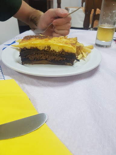 Read moreWe where driving with the scooter from the bottum point of the island to Pirgy when in the region of Kerkyra it started to rain heavily at 11pm. We stopped at the first restaurant to have diner and wait for the rain to stop. I had the Musaka and my girlfriend the puzza which where both good! After dinner we requested special raincoats because we still had a 45 min drive ahead on the scooter and it was still raining (garbage bag with holes cutouts haha). The people from the restaurant helped us cut the holes and took a pictures for us, then laught freindly and waved us goodbye in the rain! If the restaurant reads this, we came back home safely, and thank you so much for your help! It would have been so much worse without the bags!...
