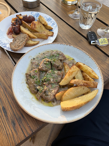 And here is why I question if other people who have reviewed this place have really bad taste or if this restaurant hated us because the main course was one of the worse main courses I've ever had. None of us were satisfied with our food since it was not seasoned or salted enough and most of it acutally looked like some gym bros mealprep/leftovers, aka NOT restaurant quality in our opinion. Since I have some allergies I asked if they could remove one ingredient from the fish I ordered, which wasn't a problem, but the dish I got was one of the most dissapointing meals I've ever had. It was white fish which hadn't been salted (enough) with soggy potatoe wedges which was COVERED in olive oil and that was it. The fish was perfectly cooked, I'll give them that, but the components were just awful. No veggies either, just soggy potatoes and tasteless fish with oil as "sauce". It was like they removed all the seasoning since I couldn't eat one of them. And again, they didn't come to clear our table until someone got up to grab one. of the waiters to come and clear it, and when they did, they left half of the plates so we had to grab them once again several minutes later since no one came to finish clearing the table.