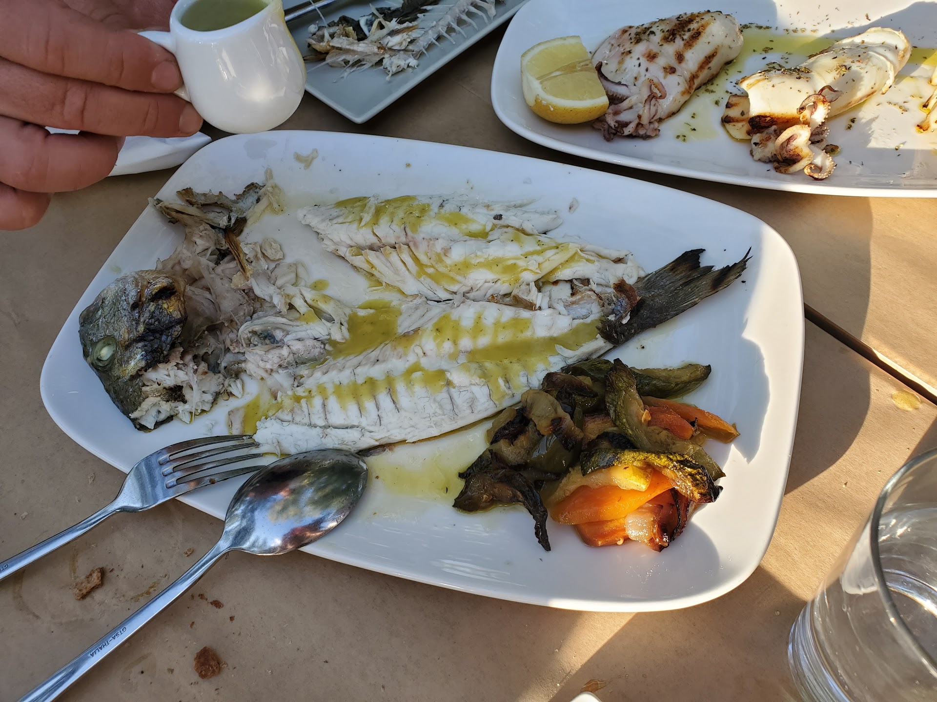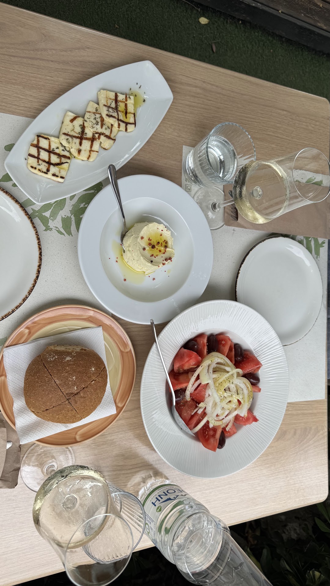 What followed was a feast – a genuine celebration of fresh, local ingredients prepared with love and simplicity. We savored juicy tomatoes with sweet onions and fragrant olive oil, perfectly grilled halloumi, creamy and delightful tarama, tender grilled octopus, and succulent calamari. Each dish was a testament to the quality of the produce and the skill in the kitchen. And let's not forget the wonderful house wine, the perfect accompaniment to this incredible meal.