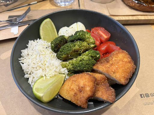 Read moreThe place has a pleasant, dynamic, contemporary vibe. It's air conditioned, and nicely furnished. The food and service were average: it took them 30 minutes to prepare a burger and a Buddha bowl. The chicken tasted as if it had been cooked in rancid oil, otherwise both of the dishes were okay. Don't expect anything special. The prices, however, are very reasonable. We were waiting for our flight, so spent more than 3 hours there. The staff didn't say a word, and were lovely. We'd happily...