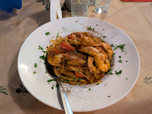 Read moreThe food tasted very good, but I felt like amateur mistakes were made. The spaghetti with shrimps was cooked excellently, the sauce was very tasty, but the amount of shrimp was very poor (only 3 whole shrimps) and the biggest problem with them was that they were peeled, however their shells were kept in the dish, probably serving as a very impractical "decoration", resulting in a total and unnecessary mess. The meat in the pork souvlaki was very tough and difficult to cut or chew and nearly impossible to get off the skewer. The fried potatoes, corn pita and tzatziki were excellent. The only dish from our order which was without problems was the soutzoukakia with rice. The staff were in a never ending rush, however that is acceptable since the restaurant was full the whole time and there was always a line of at least two groups. The atmosphere is perfect for dinner, especially after it gets dark and the street lighting turns on. There's probably no better place in this...