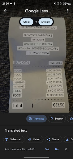 Read moreDo not come here. The food is mediocre and they make you pay for (old, chewy) bread and (warmish) water you haven’t ordered. It is simply brought to you before you can reject it and then charged generously. We had marinated anchovies as a starter, packed with sunflower oil and balsamic vinegar, which killed all taste or flavour. They actually tasted stale, not fresh at all. Then got grilled kalamari (although it was actually cuttlefish rather than squid), which came with a weirdly dense, presumably lemon-based sauce, and moussaka, which was unimpressive and quite dry. When asked for the bill they required us to pay first and said they would give us the itemised bill only afterwards - on the promise that they would pay us cash back, if something was incorrect. The bill was correct, but again it contained stuff we did not order. Service was OK and the view over the sea from the terrace was beautiful. So two stars rather than one. But overall, really not worth it! There are better...
