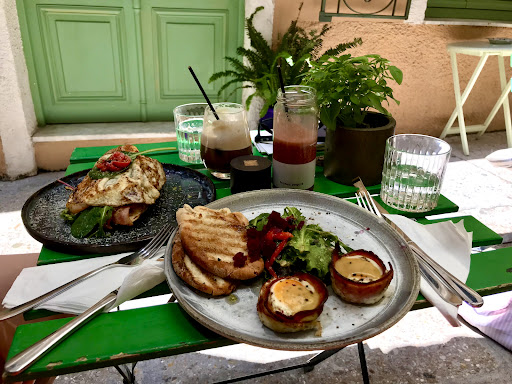 Read moreWell, it's a small place with a perfect decoration (inside) and in a good location. It is very nice to drink coffee or if you want to stay there with your laptop. It's not ok if you want to eat a brunch.... They offer 3 choices for brunch, we tried 2 of them and one wasn't ok but the problem is that you have to wait a lot..... 45 minutes for 2 dishes, 2 coffees and one juice. Although the polite lady told us that food will take some time (very positive that she said that before we order), locals told us that they always late...
