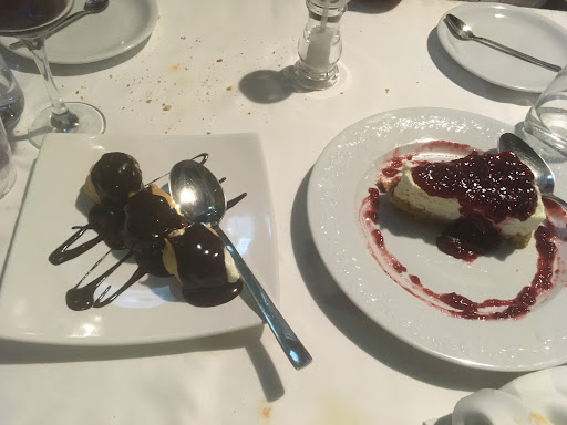The pattern of perfection even carried on to the dessert, which consisted of fresh, melt-in-your-mouth profiteroles doused in a bitter chocolate sauce and the sublime cheesecake that was by far (you guessed it) the best I've ever had.