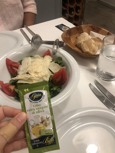 We were shocked by the presentation- our salad came with olive oil and vinegar in two plastic packets.... really! As if the kitchen can’t throw in their own quality oil and vinegar on the salad! The size of the plates was way to large, making our pasta cool down quickly and look really flat and unappealing.