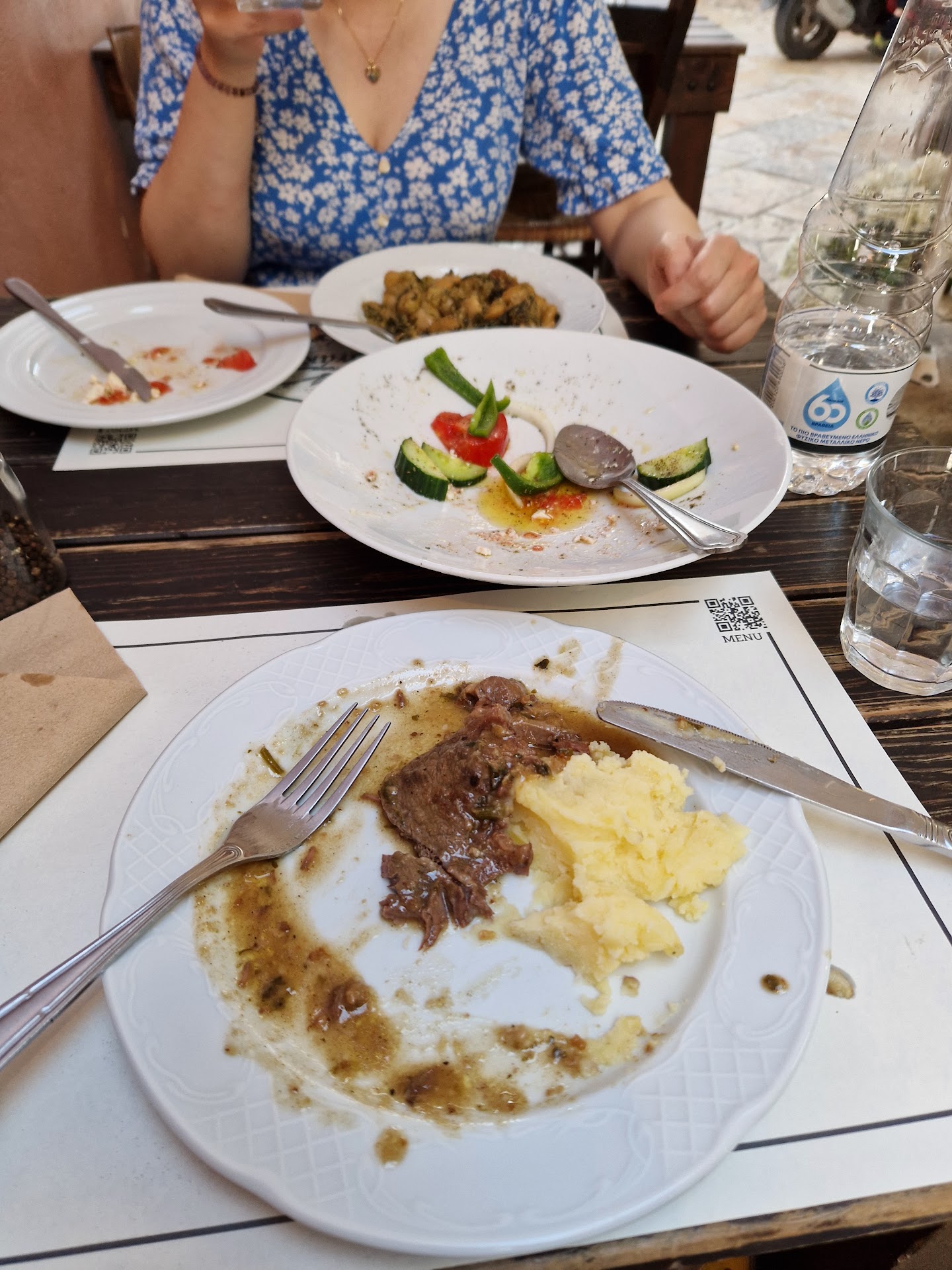 When I arrived, I was non-warmly welcomed. While ordering, my questions / efforts to chat were totally ignored, i knew their Sofrito was good and had already decided to order that. Normally when I asked in other tavernas what i should try, at least something comes up. Here, nothing. Similarly for wine, nothing.