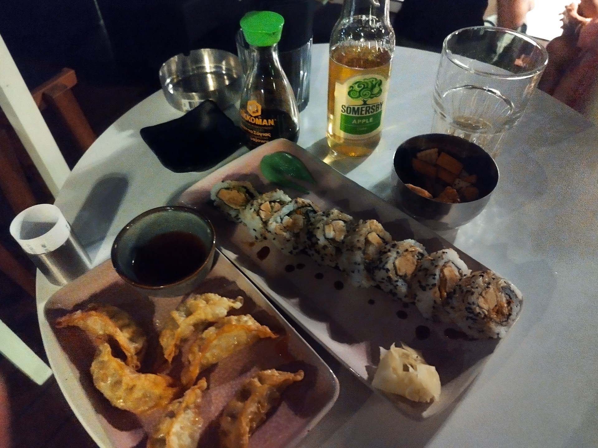 Booked a table far, far, far ahead to get the good view NOAK is famous for. Was placed in the middle. When asked to get a table on the waterside after first cocktails and nibbles I was told there would be a minimum spending of €300,-. We decided to stick with our table. Please, don’t get me wrong- a minimum spend would be ALL OKE for a ‘hotspot’ sushi restaurant like this, we know the deal, ‘we get around’ 😉……..if only: the waitresses were representable. The place is trendy so I understand they want to dress accordingly, but not with stains on clothes, bra-less with tops too small so you would be scared anything might fall out on either side of the top. That might work at the beach. One of the waitresses wás representable, smiled, was friendly. Her top was small as well, but kept everything in place, had her hair tied up and didn’t sneeze on placemats before setting the tables. Table was more set like in a taverna with too small páper napkins and chopsticks. The manager and his sidekick presented an attitude and were smoking shisha at the entrance the whóle time, taking turns. Food was oke, cocktails were oké, nothing more, nothing less. Ended up spending somewhat €150,-, didn’t order a bottle of wine, kept it with 2 drinks, no dessert/coffee. Wasn’t worth it. Again, minimum spend is all good, but get your act together!