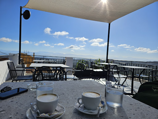 Read moreWer die Pelekas Cafe Bar besucht, muss wissen, dass hier nur Getränke verkauft werden. Aber es ist ein schöner Platz, um das Treiben in der Dorfmitte von Pelekas zu beobachten. Speziell wenn der Bus kommt und direkt am Lokal sein Wendemanöver vollzieht, ist Action angesagt. Die Bar selber ist sehr ansprechend eingerichtet und auch hier sitzt es sich sehr gemütlich. Noch besser ein Platz auf dem Balkon mit hervorragender Sicht auf die Insel. Es gibt sogar eine Dachterrasse, die sogenannte Sky Bar, welche bei unserem Besuch allerdings noch geschlossen war. Also alles bestens und viele Möglichkeiten an verschiedenen Tischen seinen Drink zu schlürfen. Warum dann nur 4 Sterne?! Das hat unsere Bedienung zu verantworten, die einen relativ unmotivierten Eindruck gemacht hat. Das haben wir so auf Korfu in keiner gastronomischen Einrichtung ein zweites Mal erlebt. Einzig die Verabschiedung war sehr herzlich und da drängt sich die Frage auf, ob man sich mehr darüber freut, wenn der Gast das Lokal verlässt?! Völlig verrückt, vielleicht hatte die Dame auch nur einen schlechten Tag. Jedenfalls ist die Pelekas Cafe Bar dennoch einen...