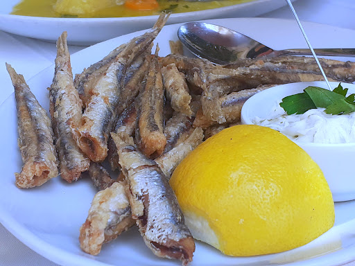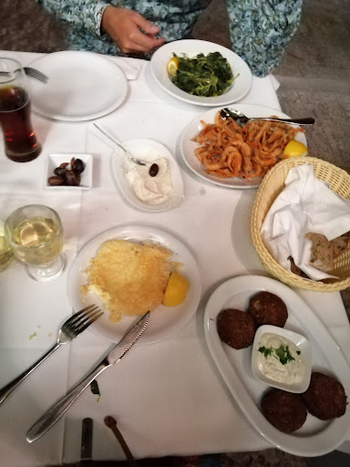 Lovely place with great food. We had mezzes and a dessert. We weren't sure if the mezzes would be enough, but we needn't have worried. We struggled to finish all of it. We ordered fried shrimps, fried cheese (saganaki), wild vegetables, taramosalata, and octopus croquettes. The shrimps were lightly coated with flour or a batter and deep fried. They had lots of flavour and we received a serious pile of them. We struggled to finish all of them. The cheese also looked to be deep fried, because it had a very crispy cheesy exterior. It's not the first thing you'd pick from the menu when you read it, but I can highly recommend it. It's cheesy and crispy, simply great. The octopus croquettes were kind of mediocre, even though the accompanying tzatziki was nice. Then the taramosalata. This spread, which contains fish roe (among other things), had the consistency of hummus. It tastes of fresh fish and was nice with the crunchy bread. These mezzes, which are called appetizers on the menu, are really meant to be shared with each other. The portion size for the shrimps, for example, was huge for an entree. Also, sharing is more fun. After struggling to finish all of this, we just had to engage our dessert stomachs for the lemon cake. Still, we had to share it. It did not disappoint. The cake was very dense and rich and served with ice cream. A tasty way to end a good meal! Highly...