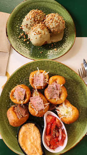 We are an Asian tourist family of 4, came here two days ago to try the pistachio filled doughnuts, cinnamon and honey doughnuts and some savoury ones. Food was okay but can be overwhelmingly sweet so maybe get lesser pieces if you’re not a fan of very sweet desserts!