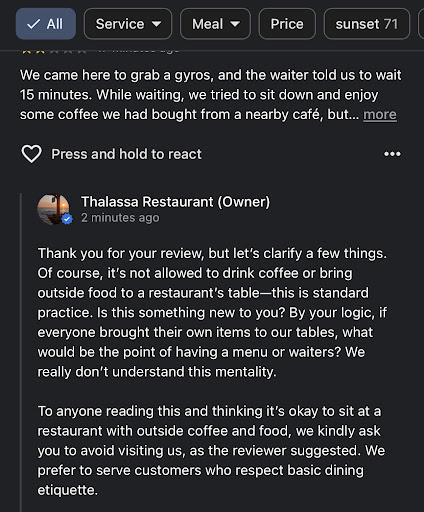 In a place that mostly hosts tourists, a bit more care and attentiveness toward guests would definitely be expected.