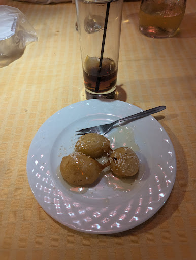 We ordered a mixed appetizers plate which in the menu said was 500 gr. The plate included 4 small cups with at it's best 200 gr of dips and 12 slices of baguette bread which you could see through (very thinly sliced and with holes so you could not put too much dip on a slice). We pointed out to the waiter that the plate has not 500 gr, told us he will check at the kitchen and never gave us any explanation. Continued to behave as nothing happened. We asked for some more bread, brought us another 6 pieces with holes in them so we ended up finishing the dips plain, with the fork. Otherwise, mussels were OK and the dessert very good. I would...