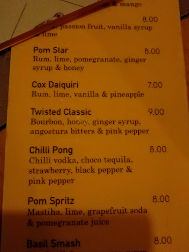 Read moreWent there two nights in a row and tried the "chicA callinete", "biscuit", "bikini bravo", "p* spritz","chilli ping" and "twisted Classic". All were very well balanced and well-made. Lovely friendly bar tender working on her own. Amazing to get this quality in...