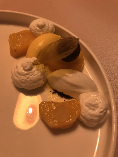 Being that I ordered the tasting menu they brought out a desert that was exceptional. It consisted of chilled pineapple and maybe mango slices along with different flavors of “foam” toppings and I believe a peach sorbet.