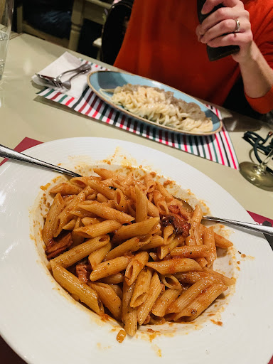 Μικρή καρμπονάρα η οποία είναι σαν πρώτο πιάτο (όπως μας ενημέρωσαν), 9€. Ένας ενήλικας άνθρωπος δύσκολα χορταίνει ακόμα και με το κανονικό μέγεθος το οποίο είναι πολύ πιο ακριβό. Αν από γεύση ήταν κάτι το ιδιαίτερο, μαζί με έναν χώρο που μπορεί να το συνοδέψει, θα μπορούσε να δικαιολογηθεί. Η κανονική Pesto είναι λίγο μεγαλύτερη σε ποσότητα. Με βάση άλλα εστιατόρια, 1/4 λιγότερο της μερίδας με διπλάσια τιμή. 11€ το πιάτο (θεωρείται από τα φθηνά πιάτα η Pesto). Αλμυρή και βαριά χωρίς κάτι το ιδιαίτερο.