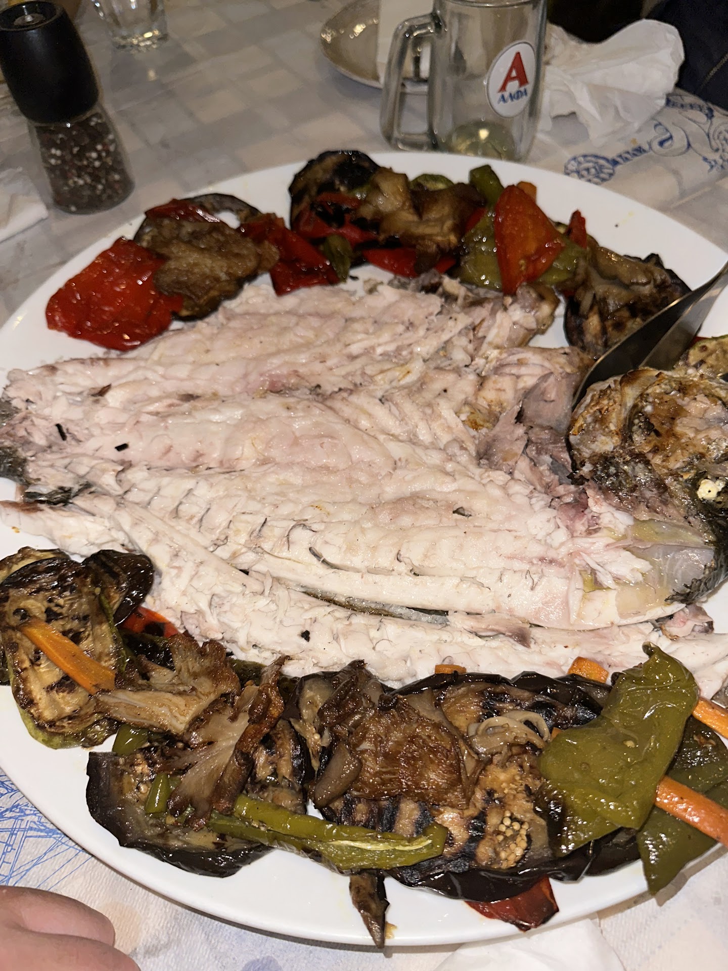 Most important, the food was awesome. The meze were delicious. We ordered plates to share. Highly recommend the salads, chicken dishes, octopus in wine sauce, fresh fish, you can't go wrong. They also have a great selection of tsiporo, which was very important for our crew. Highly recommend this restaurant if you are in the area.