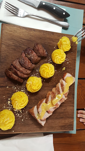 It's a very stylish beach bar the Asteria plage... Star Plaza. Very nice seating areas and also very beautiful areas for sunbathing. The sun loungers are very comfortable and the umbrella s again stylish but not doing much for shade. So take a high sunscreen cream with you. This place is popular with the high end crowd. It is on the very expensive site of the variety of beach options you have around Chalkida. On the plus side the waters are Cristal clear and shallow. Good for families with small kids. The deep end of the water is marked and additionally there is a life guard who observes very carefully if you tend to be taken by the wave. The service on the other hand... Not very good. The waitress was slow and not attentive. She wouldn't even turn after being called. On the other hand... She was pretty. It's located in the centre of Chalkida, therefore very convenient for people who stay in the centre and the carpark charges a small single fee of 3.50 EU. There are lots of other places around there where you can eat or just...