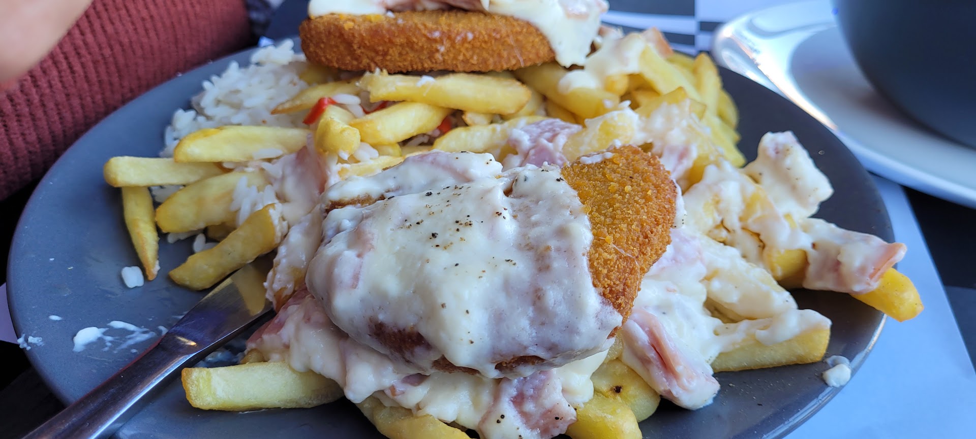 Although the place had amazing interior design the food Is a bit let down. Frozen cheese balls and the deep fried cheese seemed to be a low quality cheese. The patties are precooked and chewy and I am saying this because they came at the same time with the salad, 5 minutes after the order. Extraordinary huge portions. And every portion is loaded with French fries forming a huge mountain in a dish. I highly recommend it for a salad and a drink to enjoy the view to the beach and and the garden look of the front porch. Or you can have a "normal" portion and keep eating for a couple of days. Two stars for the food and five stars for the...