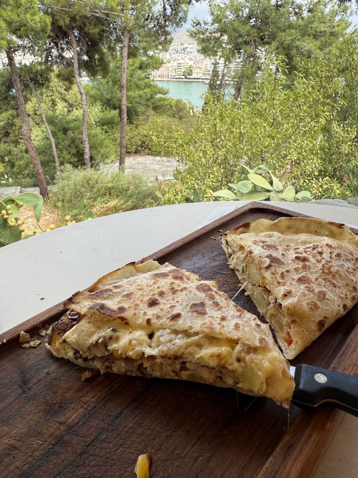We ordered fresh orange juice, fresh mixed fruit juice, and the maxi omelette tortilla. The drinks were indeed fresh, but the taste was underwhelming and not served cold enough, the little ice melted quickly, leaving them diluted halfway through. The food wasn’t great either: eggs were overcooked, and some of the chicken and veggies were burnt. That said, the view and atmosphere here are truly unmatched, perfect for enjoying a coffee or a beer while taking in the scenery. For the location alone, it’s worth visiting, but I’d skip the food next time.