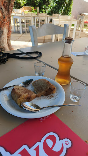 Read moreVi blev tiltrukket af tilbuddet om gratis solsenge og skulle samtidigt finde et sted at spise frokost. Vi valgte dette sted og fik Greek pizza og stuffed burger med ost og peberfrugt. Pizza bunden virkede som noget færdig lavet fra supermarkedet der var blevet bagt for længe og kun fyldet var heller ikke videre interessant. Burgeren var ikke traditionel lavet, men nærmere 2 stykker oksefars bøffer med ost i midten og pitabrød stykker ved siden af. Jeg kunne godt lide stegningen af bøffen der var medium rare i midten. Service er flinke og gav os honey raki med halvas på husets regning, dog kunne service godt gå lidt hurtigere taget i betragtning at der ikke var mange gæster da vi var på stedet. Jeg kan anbefale stedet til at drikke og bruge de gratis liggestole, men ikke...