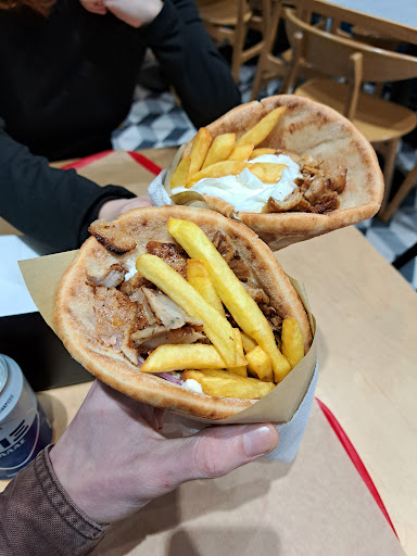 Good gyros - I had the small pita and it was more than enough!! Skinny fries are very good Nice to sit in the window seat and people...
