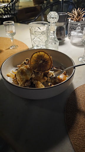 Beautiful location in the Zeus Village Resort outside of Agioi Apostoloi, very serene and chilled boutique hotel resort with a lovely restaurant laid out on the patio by the pool. Food was exceptional, lifting it above the traditional Cretan grill, gyros and meats to a beautifully done yet still traditional offering. We were staying at the Airis Boutique hotel not far away, and this came up on my search for dining out, with a Google maps 5.0 score. Glad we made the short taxi ride out. We went with the shared grilled octopus followed by the sea bass friacasse, and I had the traditional lamb and rice dish, and then a shared ice cream infused orange cake to end. Also, instead of the traditional Raki which can be an acquired taste, a slightly different local liquor offering, not harsh or aniseed, slightly sweet, pleasant and drinkable. All in all, highly recommended if you are in the area, but also, not far out of Chania either, well worth the trip. Well worth it retaining the 5.0 score. Enjoy! PS we did book a table prior to coming, worth doing particularly if you are coming a few miles to get here, saves...