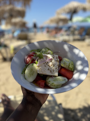 Read moreOn arrival two men sorted our sunbeds. One was very rude and abrupt. My cousin enquired about a taxi the man told her he C is not a taxi man he doesn't know anything. Just being really rude in his tone and super unhelpful. Then later I ordered a Greek salad. I asked for a few extra olives. When I settled my bill I was given no change and told the extra olives cost âŹ3.50. If I was told that from the start I would have enjoyed the 5 in my bowl and that you can't even see picture is below. Instead I was overcharged. No receipt no change and shouted out. Then told to say please for my change. When the man refused to give me my change I went in the restaurant to talk with the manager. The manager continued to shout at me also. I didn't get my change. So had no choice but to leave. I came off my cruise ship to be abused. If ever you're in Crete NEVER come here. I would have hated it if I were with my kids and husband. Avoid at all costs especially it your...