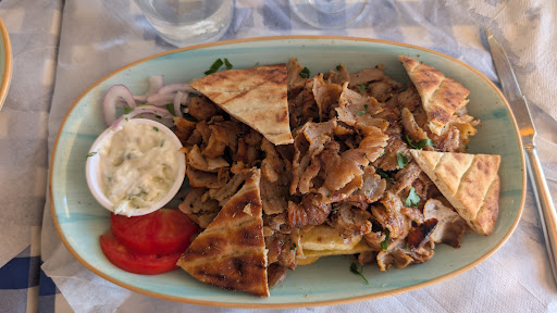 Read moreWe chose this place for lunch, since it was the only place where it looked like they could make room for a big party (there were 8 of us including a toddler). The menu was huge, and in various languages, but very horribly translated. It was quite difficult to know what the different dishes came with and we all kind of panicked when the waiter asked us, if we were ready to order for the third time. We ordered tzatziki with bread for all of us, and most of us went with the gyros and some shared the mixed grill for two. To be honest, we did expect this food to be less than good, since everything in this place was kinda dirty and sticky - my shirt kept sticking to the back of my chair. The tzatziki was served, but we had expected it to be served with pita, but only the tzatziki was served, so apparently we had to just eat it with the really dry bread that was served when we sat down. We all took tzatziki on our plates, but a few minutes after, a waitress came and took our plates away, but luckily some of us did manage to stop her - not something she liked, and she seemed like we did her wrong. But come on, we were still eating. Our main dishes were served, and it was actually really good. The mixed gill was very big, and delicious. After we were done, we got pound cake, ice cream and raki, on the house. So to sum everything up, the food was good, the service was mixed and the place was dirty. I'm sure you can find somewhere...