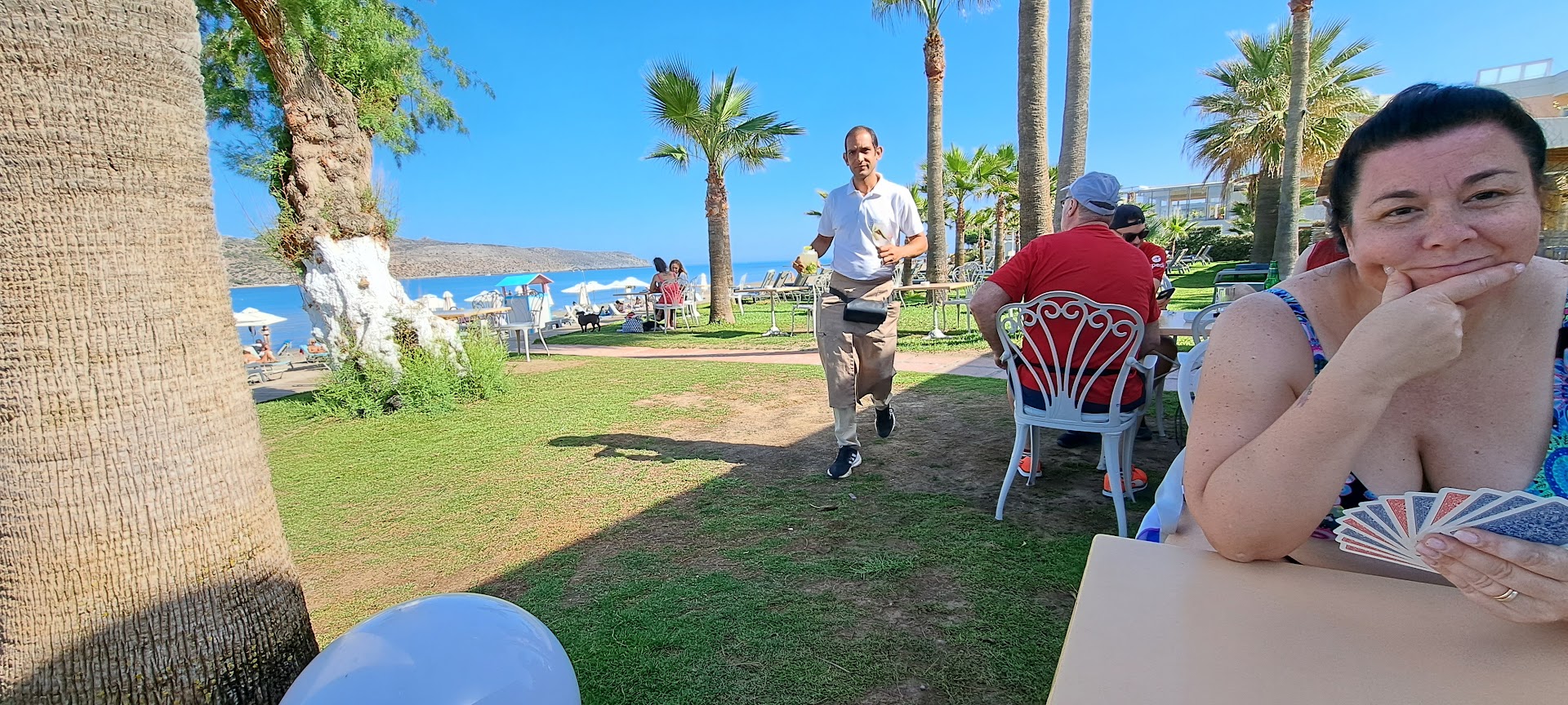 Slow service, poor service, poor kitchen. What is happening here? We had reserved a table for ten persons. Ordering drinks took a very long time, and getting them served took a very long time as well. The drinks were not served to the intended persons, but just placed at the end of the table, and we as guests had to pass them around. We had to wait a long time before someone took our order for starters and main dishes. The waiting game was now definitely on! For starters, we ordered three small Cretan pies and two tzatzikis with two breads on the side. Almost one hour after ordering, the pies and tzatziki were served, but not the garlic bread! We were told that it was coming. Both the tzatziki and garlic bread were supposed to be eaten together! The garlic bread was finally served half an hour AFTER the tzatziki. My wife and I had already eaten our starter (pies) 25 minutes ago! It is VERY important to emphasize that no one, I repeat, no one at no point during our stay asked us if we wanted any more drinks, not even one question if we were satisfied with the food either! Well, finally we were ready for the main course. This is a story for itself. The plates from the starters were not removed before serving the main dishes. This resulted in “chaos” when the main courses finally arrived almost two hours after ordering. Out of ten of us, four of us got our main dishes first. Half an hour later, five more main dishes were served, but the last one came almost 50 minutes after the first one. Most of the dishes were not warm, and the mixed grill platter had some of the toughest and tasteless meat ever eaten! To be fair, my Stifado and my wife’s pasta dish was tasty and warm enough. We have never ever experienced this kind of lack of/poor service anywhere in Crete before. If possible, I would have given this restaurant zero stars. You might say I gave this place one star because of the beautiful view. I cannot recommend this place. Stay away! I will be very hesitant to give this place...