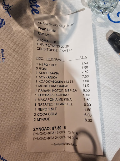 The food itself was the biggest letdown. The souvlaki, which we remembered fondly, is now clearly made from processed meat and bears no resemblance to the homemade quality we enjoyed last year. To add insult to injury, the previously delightful dips are completely gone.