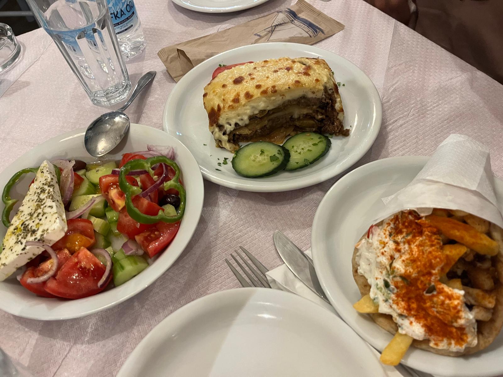 Two of the top foods in Crete are here. Hands down the best pita gyros in Crete. We have tried countless but none had the overall quality and cohesion as this one. Big difference is the pita they use. One of the waitresses told is that they use the old school pita bread (as opposed to most of the other gyros places). The dough is perfectly soft and they also grill it for the extra flavour. The balance of veggies, potato, meat and sauce is spot on. Must ask with tzatziki. The best we have tried in a gyros. Meat has a great flavour and the potatoes are perfectly fried but creamy soft in the inside. Really amazing!!! The next one is the moussaka… this one is also the best one (to our taste) on the island (and possibly in Greece). Well balanced, juice, has sufficiently strong flavours (some people might not like it). But believe me, it has the wow effect. The other moussakas of the island are far behind. Only one from the mainland is on par with it. Moussaka business is not an easy one! Again, this is only according to our taste. Hats off to this establishment. One thing caught our eye: while another couple got free dessert and raki, we didn’t. We had a moussaka with small greek salad, gyros and beer - maybe we spent under the threshold of giving free stuff. It’s understandable if people only ask for gyros but we were a bit surprised. Nevertheless the food and the warm service beats this...