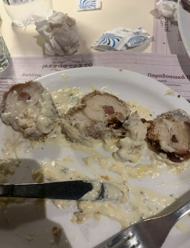 The breaded stuffed chicken my girlfriend ordered was dry, tasteless and drowned in a cream sauce like they were trying to cover up the crime they were committing. The lamb chops were good but nothing special (not worth 18ā¬).