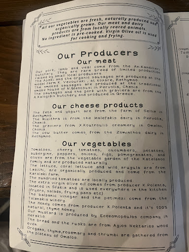Atmosphere: The restaurant has outside tables, on a typical street in Chania town. It's a lively atmosphere. You might get street performers singing and asking for money, but you don't have to pay them (we personally did not enjoy this at all, but it's nothing to do with the restaurant, it happens in many places in Chania).