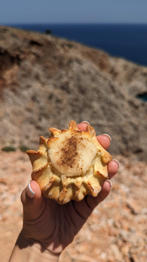 Read moreWords cannot describe how delicious the lichnaraki ( small pie filled with sweet local cheese, called mizithra) . Hand made with love and with the addition of quality honey not just sugar. Mrs kaiti makes them daily and we got the chance to taste the warm. We visited the place twice and if we could we would take the whole shop. We also tasted the kalitsounia pies which were very nice as well with local herbs. Mrs kaiti is so kind. Make sure you pay by cash