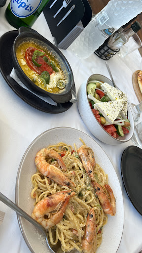 Went for a late lunch, after reading the good reviews. -Best grilled shrimps wife had in Crete in the 5 days prior. Menu came with fries, quite consistent portion. -Chicken souvlaki delicios as well, 1 skewer with a special sauce/gravy that I never tasted before in Greece. Serving came with salad and some fries. -grilled feta cheese, somewhat similar to boyourdi with a lot or green peppers and fewer tomatoes. Delicious aswell. It was missing (as per my linking) some pita bread, which borrowed from the souvlaki.
