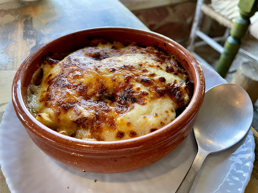 Read moreWe went here just for a souvlaki, nothing special expected. Menu was huge, everything Cretan you can think of, plus pizza. I tried the fried snails as a starter, worried that with such a big menu a niche item like this might not be done well, but they were really good! Oh and before that free garlic bread with this amazing feta dip.