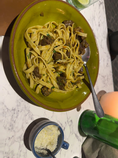 I have a problem with restaurants that try to be something they’re not. You won’t get bad food here in terms of quality of the ingredients. They are fresh (the homemade pasta was good) but the overall attitude feels pretentious and overpriced. Portions are very small for the prices. With every plate you got the impression that presentation mattered more than taste. It’s also unclear what on the menu is a starter and what’s a main. We had a normal Greek salad (€9.50!), fish carpaccio, pasta with veal ragout (you can see the tiny portion on the photo. The meat was tender but there was no real sauce as a ragout should have), and grilled green beans (€9.50 - you can see the tiny plate on the photo. Nice idea but poorly done - hard outside, mushy inside). With sparkling water and some bread with olive oil, we paid €25 per person. A nice touch at first glance was the 100ml bottle of olive oil that came with the bread (€2 per person) and which you can take home. But even this gesture reflects the overall pretentiousness: €4 (two persons) for 100ml translates to €40 per liter—while high-quality extra virgin olive oil in Cretan supermarkets costs between €11 and €14 per liter. Even adding the cost of four pieces of bread and a fair profit margin doesn’t justify that price. Also, the bread served was a dark one—badly chosen for tasting olive oil where white bread would let the flavor come through more clearly. The manager explained -in a quite pretentious way-at the beginning that everything is fresh and local and the menu even lists the producers. To make things worse, they also run a bar that plays very loud music, dominating the space and making it hard to enjoy your meal. Service was professional, but not particularly warm. Authenticity and trying to appear authentic are two different things—and this place falls unfortunately into the second category. For the same prices you can eat far better anywhere in Crete. Overall a poor...