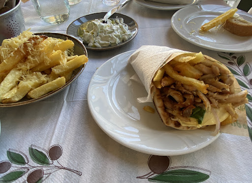 This was my first meal after a long journey from the Sataes. Recommended by my son who lives near by. Great traditional local offerings. A very generous list of options from the grill. We started with stuffed fried cheese, very good. Next turnip roots, very mild in flavor but Cooke perfect chilled and finished with some local olive oil also very good. For our entrees my son chose grilled pork kabob a very large portion tha he said were very good. My wife enjoyed her pork schnitzel with a white mushroom cream sauce also very well done. The sauce was a good addition and worked well with the pork. I chose the grilled pork carpaccio, mostly because I was curious ho they would pull tis off. Not really a carpaccio in the truest sense, more of a scalopini cut. Don't let this dissuade you from ordering it, however , the cut it was very hood. All of our meals were served with the house french fries, nicely cooked. We each had a glass of wine and some fresh bread. Service was great an attentive but not overly done.. all in all this is a great restaurant with indoor and outdoor seating. The meal for three was just shy of 50 euro more than fare. Portions were very generous. I would not hesitate to enjoy another visit. Great job! After 50+ years in the restaurant business this what I would call a...
