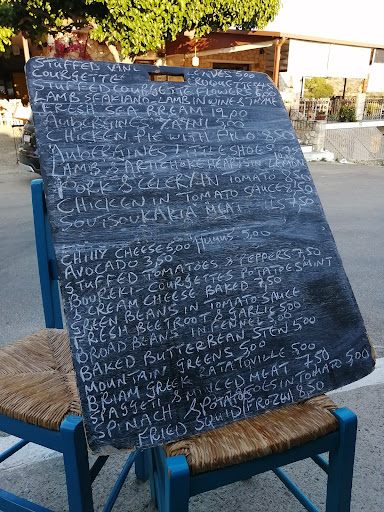 The fantastic Cretan dishes using fresh local ingredients, never fail to please. The stuffed courgette flowers are something you rarely see on other menus, with other specialities like boureki, dolmades & delicious dishes with chicken, lamb & sometimes rabbit cooked with herbs & wine. Great bbq meats too! There is a good small wine list but we always enjoy the local white wine, served in copper pitchers. A complimentary dessert of a light, fluffy lemon cake is also served at the end of your meal along with a small glass bottle of raki! I can recommend the thick sweet 'metrio' Greek coffee with sugar too.