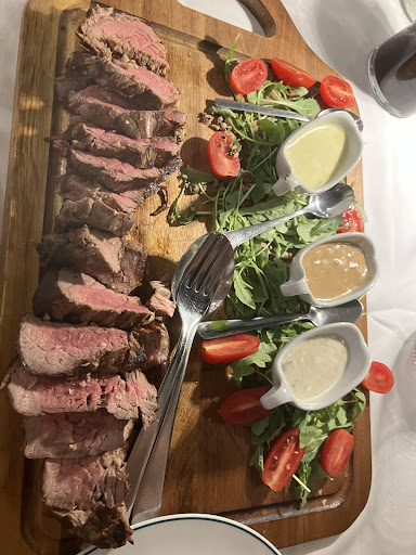 Our chateau briand was ordered medium but only the middle slices were medium while edge sides were well done :-(?Unfortunately they do not bring a portable cook for you to the table to cook it to your taste. Sauces were plain in taste and below our expectations. Upside was the amount of the meat.