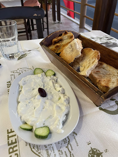 Nic went above and beyond to ensure we had the perfect spot to enjoy the soon-to-be setting sun, setting the tone for what would be an unforgettable meal. We were eager to try some local dishes, and Nic’s recommendations did not disappoint. For starters, we indulged in Kalitsounia with Mizithra cheese and another with greens, and Tzatziki alongside a refreshingly crisp tomato and cucumber salad, all made with locally sourced ingredients. Every bite was a testament to the fresh and flavorful produce of Crete.
