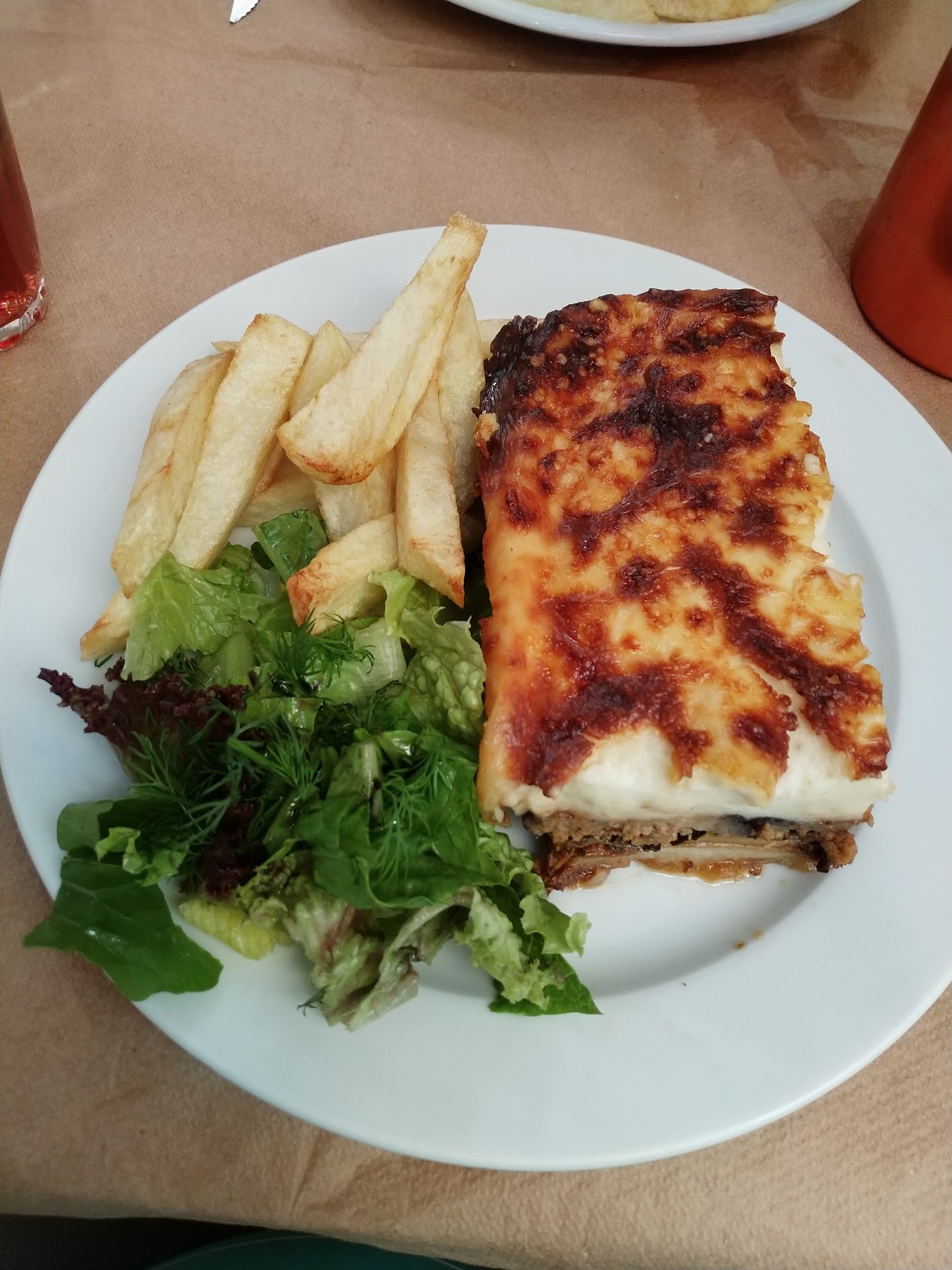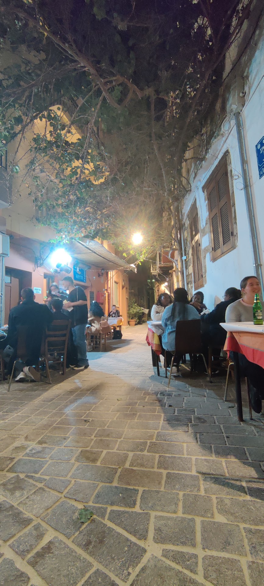 Honestly one of the worst meals I had in Chania. The fact is that the standard is quite high. I spent 2 weeks on a road trip around the island and got to experience good quality Tavernas, but this wasn't one of them. For starters it was a hot day and we were not given any water, which is a bit unusual. We ordered 2 cups of orange juice and I could swear it came from a juice box. We ordered Zuchini balls which we had in two other places, but these had egg shells in them and were quite a bit oily. As a main I ordered Rooster with white wine sauce, as it sounded quite different. It was oily as well, missing salt, garlic and lemon. Very bland. I'm wondering if it was actually normal stewed chicken. My partner ordered fried prawns, which were bland as well. No taste and too much batter. As desert we were offered melon and nectarine, which were a bit disappointing as well. I can't complain much about this, given that it was offered (which is a standard in Crete), but in many other tavernas I had much better homemade desserts. Nothing wrong with fruit, but it's just easy. The final bill was more or less in line with the fact that we were in old town Chania, but surprisingly they did not allow us to pay using card, meaning I had to leave the place in search for a working ATM.