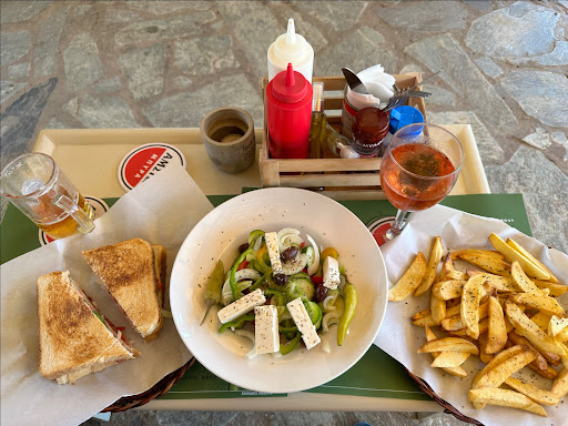 Read moreThis lovely relaxed snack bar is set about 2 minutes walk from the seafront, but it has the vibe of a beach bar. The food menu is like meals, breakfast and snacks, but honestly was the best sourced and prepared food we had in Gouves. The gyros are lovely and the chips were very special. We had breakfast there most mornings, from a simple croissant to a full Cretan breakfast. We were staying nearby, but when we return to Crete, we would like to stay in their apartments. The pool looks lovely and the garden green and lush. The sort of place to really chill out. A sort of Crete meets Caribbean. A nice antidote to the modern concrete establishments. A real family run business and true Cretan...